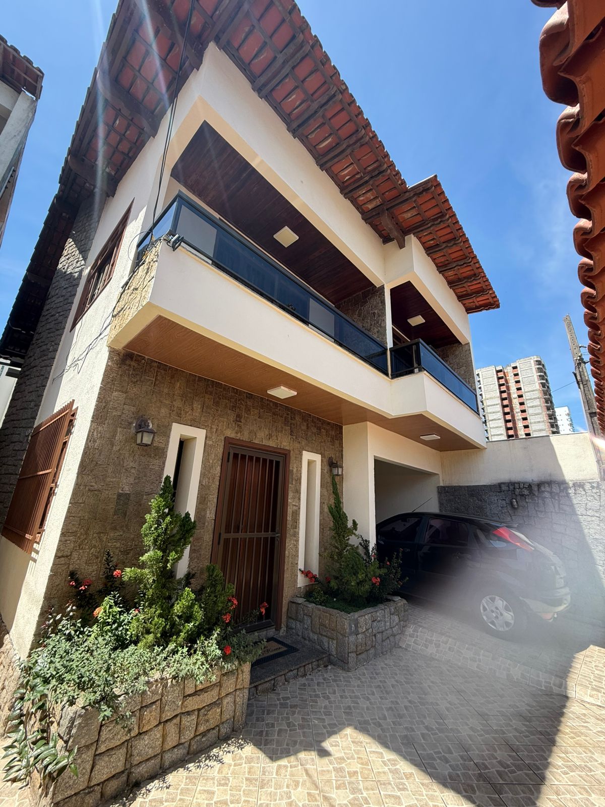 Varanda na frente e nos fundos, garagem pra 2 carros.